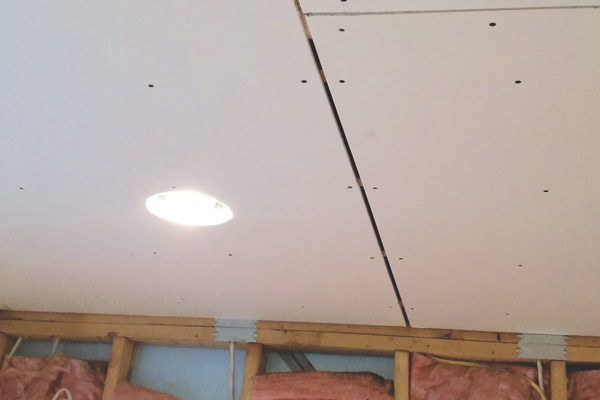 Rellenamos los espacios en las juntas de la tablarroca para crear una base más sólida detrás de la cinta. Esto, a su vez, extenderá la vida de las juntas.