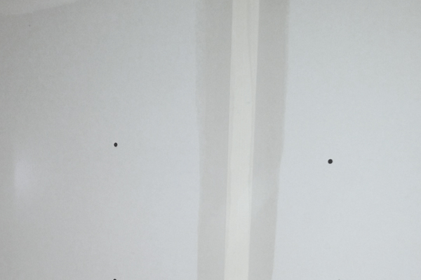 Lije las juntas y busque los puntos altos, bajos, bordes, rayones y hendiduras. Vaya circulando estas imperfecciones con un lápiz. Después de lijar todo, regrese con una bandeja de mezcla ligera y retoque todas las marcas de lápiz.