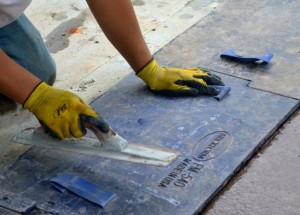 Déjelo remojar por varios minutos hasta que se pueda integrar al concreto con uno o dos pases del rasero o usando un flotador de mano con movimientos delicados. Nuevamente, evite manipularlo en exceso.