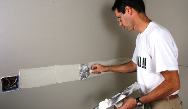 Al usar cinta de papel o cinta de fibra de vidrio para juntas, el compuesto debe aplicarse primero sobre las uniones de tablaroca a un grosor de 1⁄8 a 1⁄4 de pulgada.