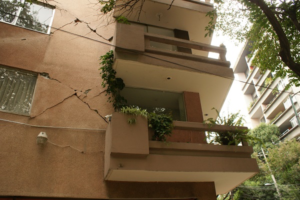Decenas de edificios de departamentos sufrieron daños en sus fachadas. Fotografía: Marco Mendoza.