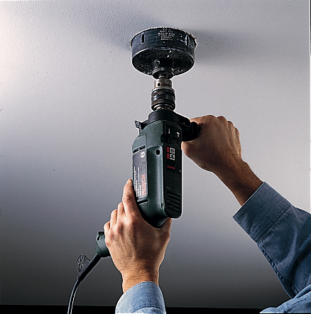 Los agujeros para las latas empotradas pueden cortarse a mano con una sierra para paneles de yeso, pero las sierras perforadoras son más rápidas y más precisas.