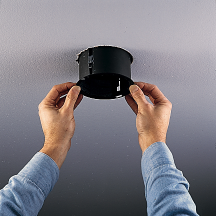 Las cavidades se insertan en los agujeros después del cableado y se aseguran al techo con algún tipo de abrazadera que se activan con resortes.
