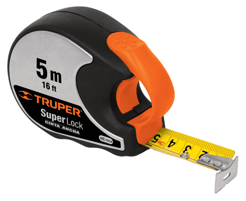 Flexómetro de 5 metros, marca Truper. Este flexometro Truper tiene el tamaño ideal, además de que es “guerrero”, resiste todo y sigue como nuevo.