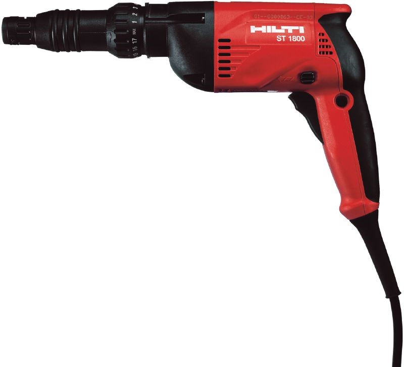Destornillador Hilti con regulador de torsión, modelo ST 1800. Cuando vas a atornillar es muy práctico porque si metes el tornillo lo calibra y no se pasa, como en la tablarroca. Por ejemplo, si lo vas a necesitar para 3 ó 4 milimetros ahí se para, no rompe la tabla. Por eso debe estar siempre en la caja de herramientas de un contratista independiente.