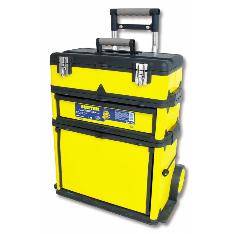 - ORGANIZADOR MÓVIL 3 SECCIONES METÁLICO DE SURTEK (URREA). 125110. Es muy útil porque en la parte de abajo puedes poner la herramienta pesada, y es tan práctico que la puedes llevar como maleta.